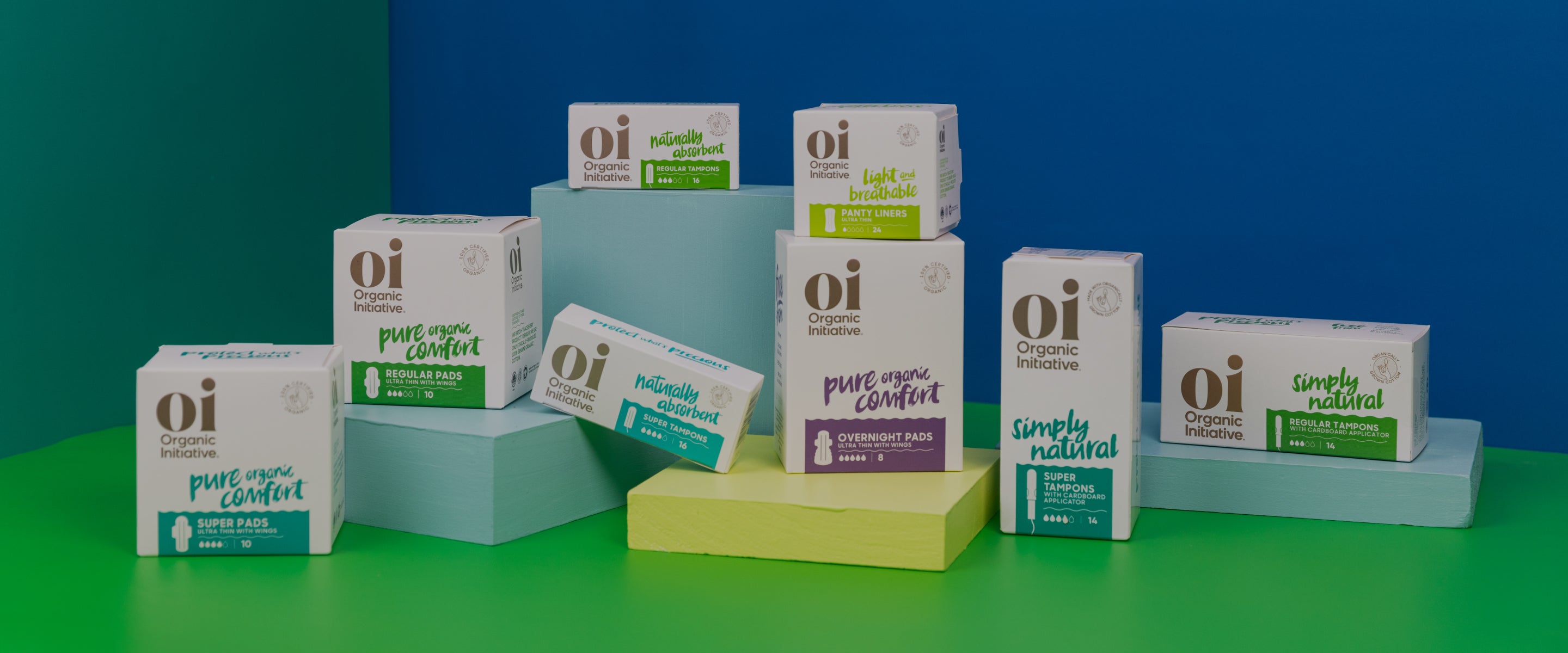 Organic Initiative disposable period products, pads, tampons and liners are certified organic. A natural choice for body and planet.